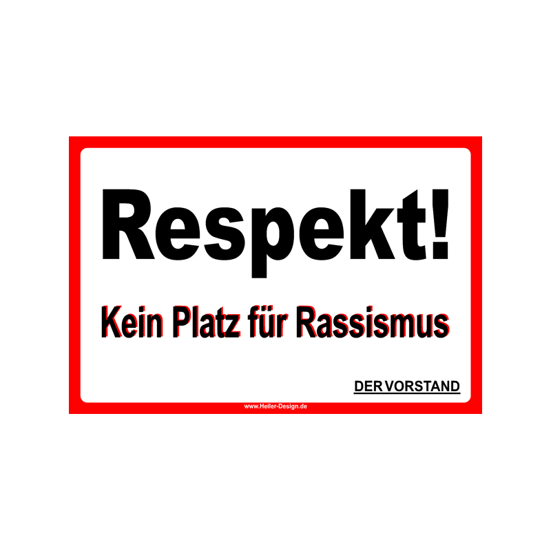 ℹ️ Hinweisschild „Respekt! Kein Platz für Rassismus“ – neutrales Schild zur sachlichen Kennzeichnung von Arbeits-, Verkehrs- oder Sicherheitsbereichen. Wetterfest, UV-beständig und für den Innen- und Außenbereich geeignet.